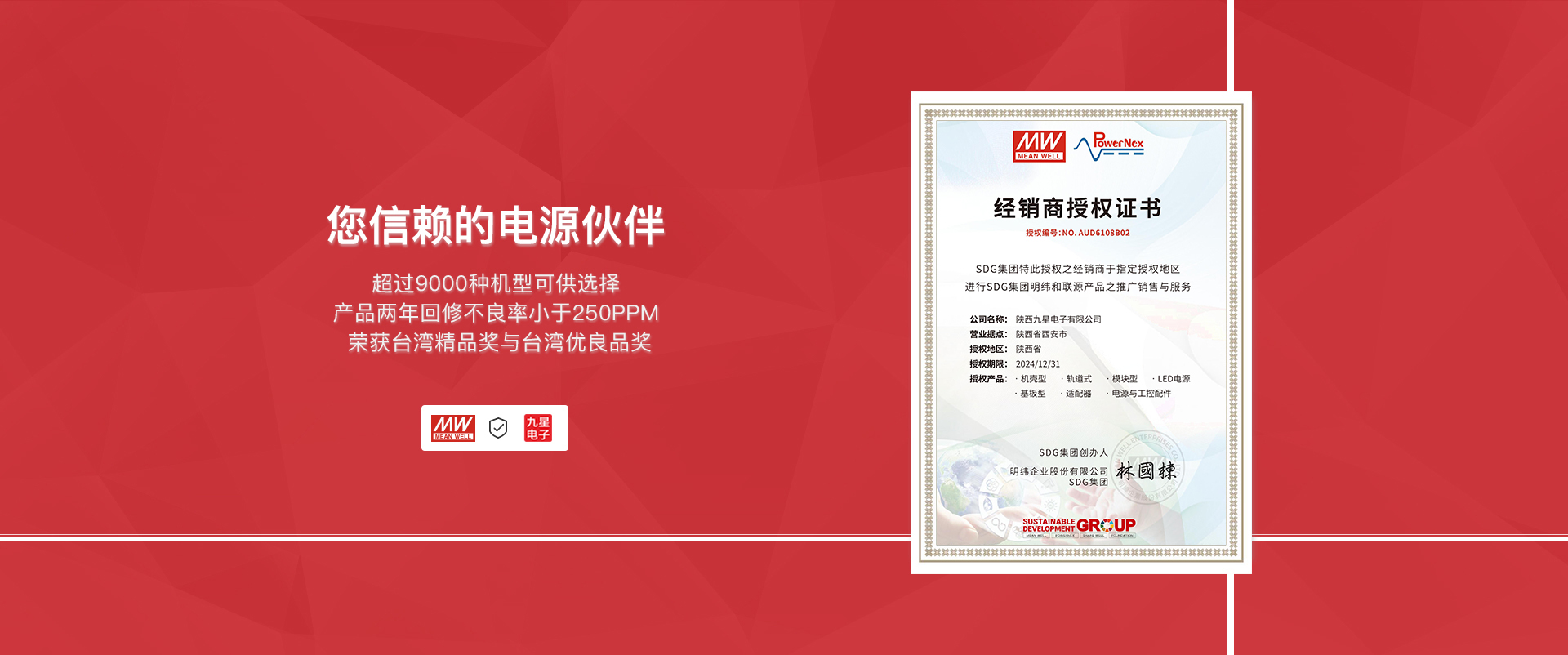 陜西九星電子有限公司是主要從事開關電源、電源模塊、控制與傳動元件、液晶顯示器等產品銷售的專業(yè)型企業(yè)。是國內外多家企業(yè)在西安及西北地區的授權經銷商,主要代理臺灣明緯開關電源、模塊電源、霍尼韋爾控制與傳動元件、日本Noritake VFD顯示器、臺灣華凌光電顯示屏等。
